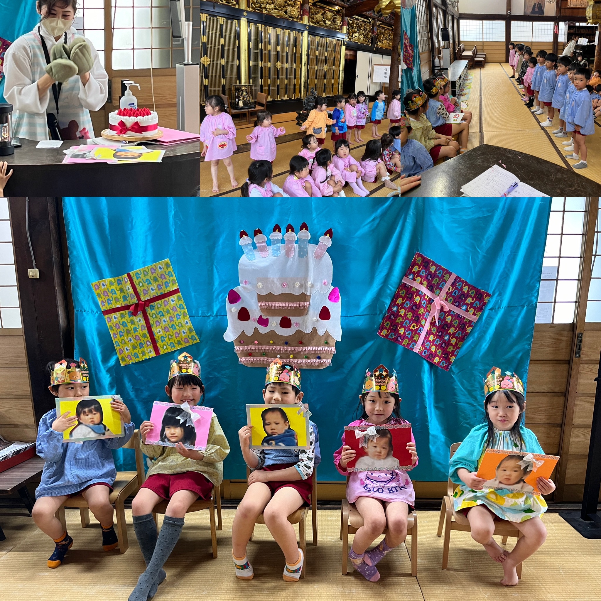 進級して初めてのお誕生日会でした。 4月生まれのお友だちに歌のプレゼントをしてどのクラスも張り切ってましたよ! 先生からの出し物は美味しそうなケーキを作ってもらい大喜びの誕生児さんでした♪ おめでとう☆