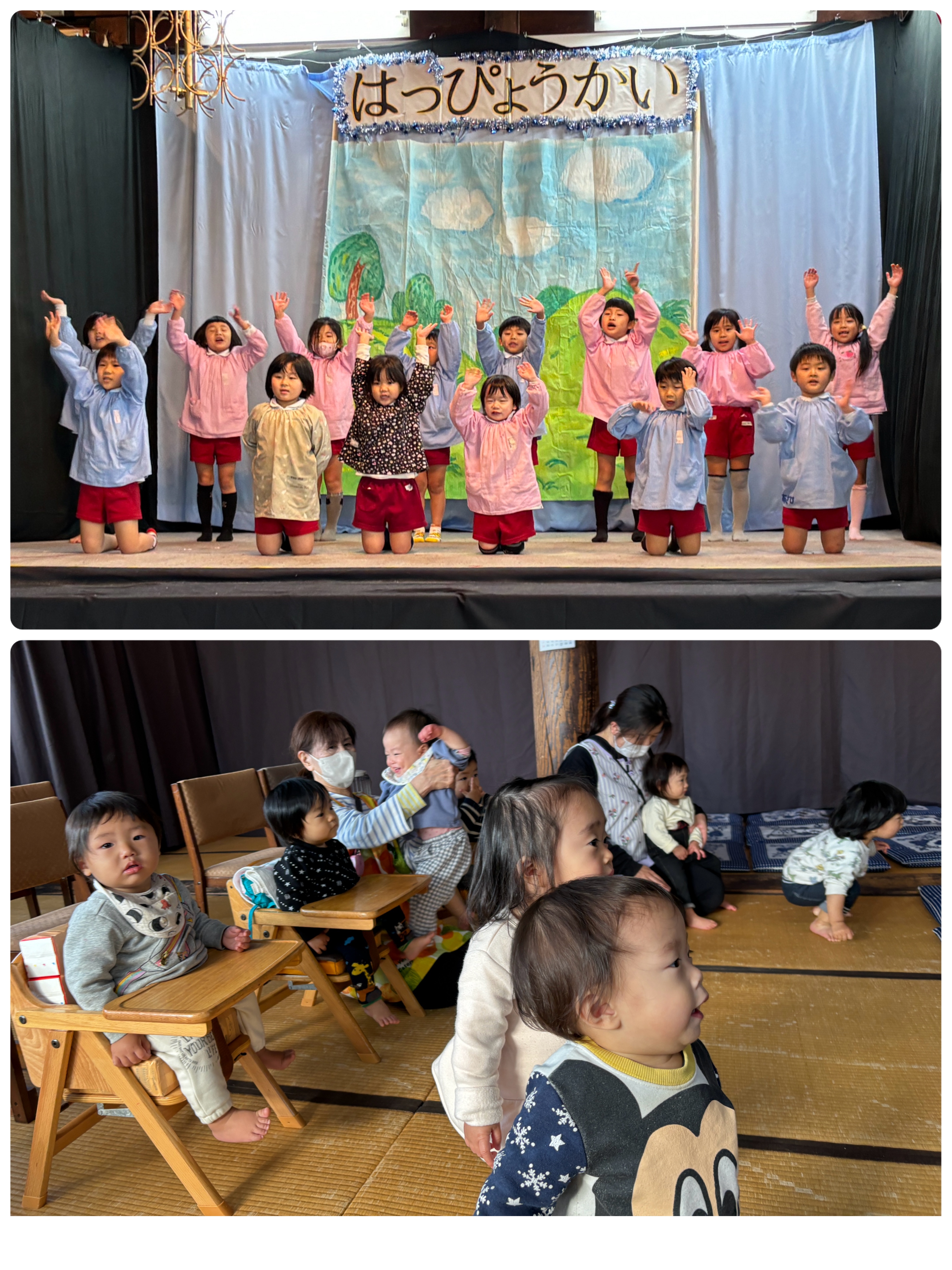 白組さんの劇の練習を観せて貰いました! 踊りの音楽に合わせて一緒に踊ったり、パチパチと手を叩いたり♪ とっても可愛いかったです♡