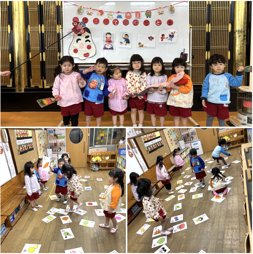 新年の始まりの今日は、みんなでお正月あそびを楽しみました。笑顔いっぱいの子どもたちでしたよ!