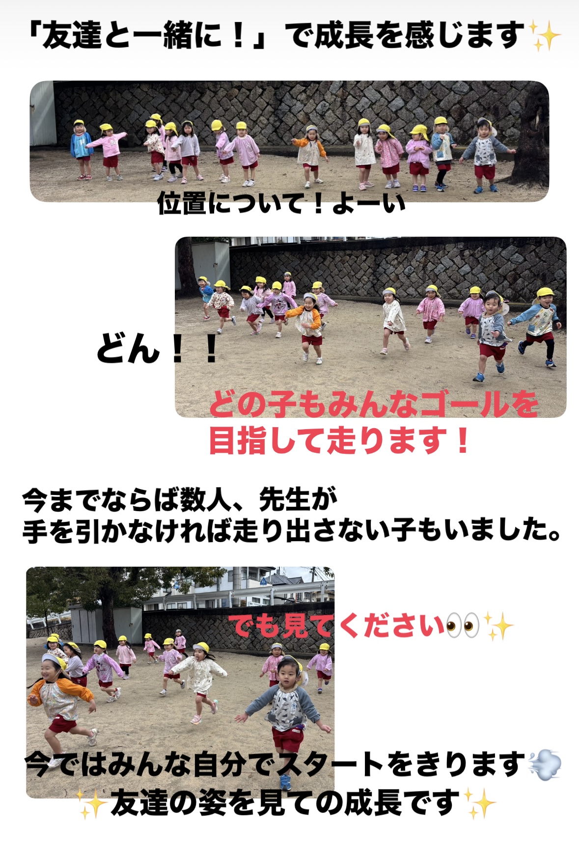 今日も雨?と心配したけれど、お天気回復!お散歩に行けました!元気いっぱいの子どもたち公園でかけっこをしました。