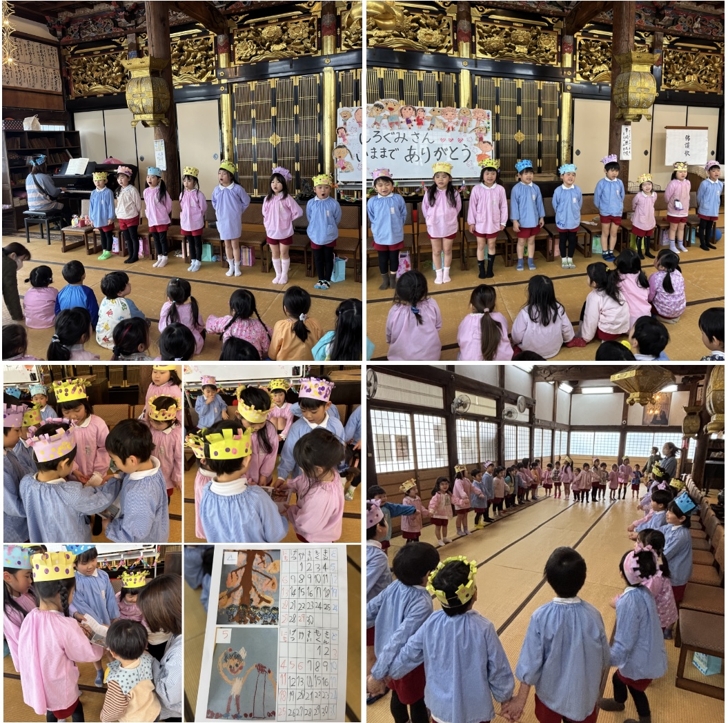 そして、白組さんからのお返しの歌とプレゼントのカレンダーでジーンとした先生たち。。本当に大きくなったね!最後はみんなで手を繋いでフィナーレの歌を!白組さん一年生になっても頑張ってね!!ありがとう。