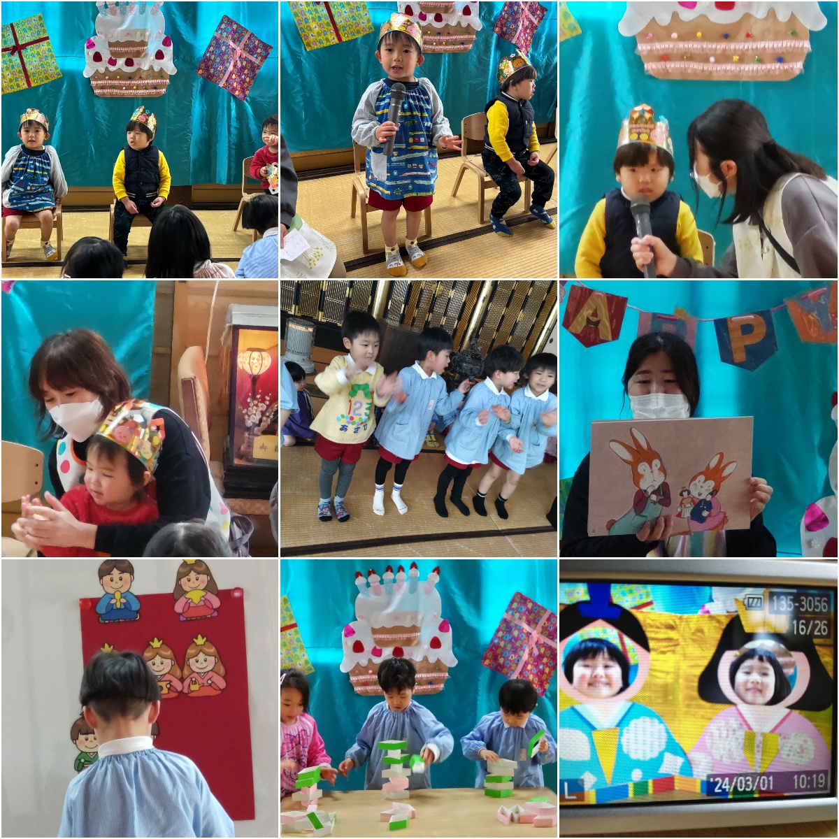 春がそこまで来ていますね。 今日は、ひな祭り会と3月生まれのお誕生会をしました。 心も体も大きくなり笑顔の会となりました。