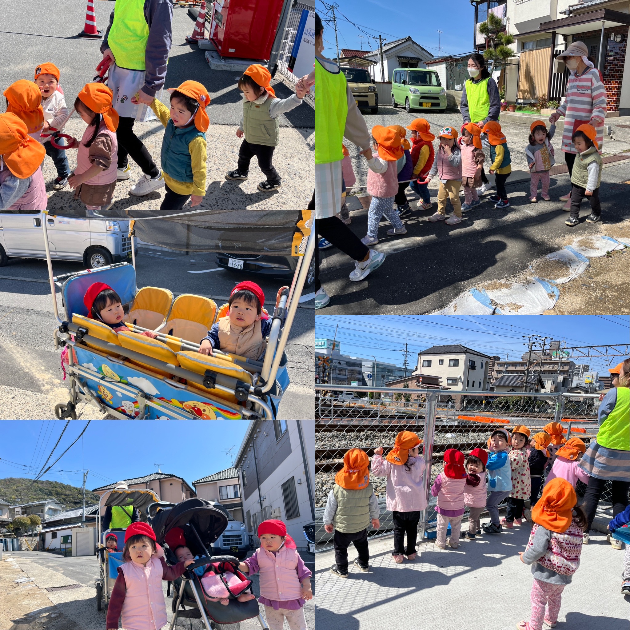 春が来たかのようなぽかぽか良いお天気♪ ひよこ1歳児さんと一緒に踏切までお散歩へ行きました。本当によく歩くようになりました。散歩車に乗ってるお友達も手を繋いでよく歩きました。