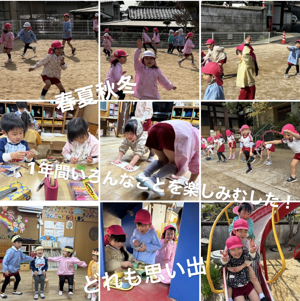 本日をもって令和5年度 桃組さんが終了です。1年間を振り返るとたくさんの思いが込み上げます! これから白組へと進級しますます成長していく子どもたちの姿を楽しみにしています。 1年間ご理解とご協力ありがとうございました。