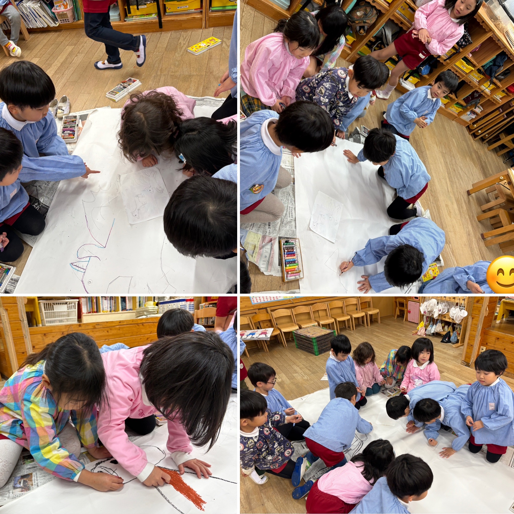 模造紙を広げて来年に向けて子どもたちみんなでお絵描きをしました。話をしながらイメージを膨らませて…できたものは12月の後半に飾りたいと思います!