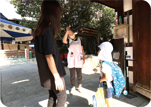 明るくあいさつを交わしながら健康状態を把握します。