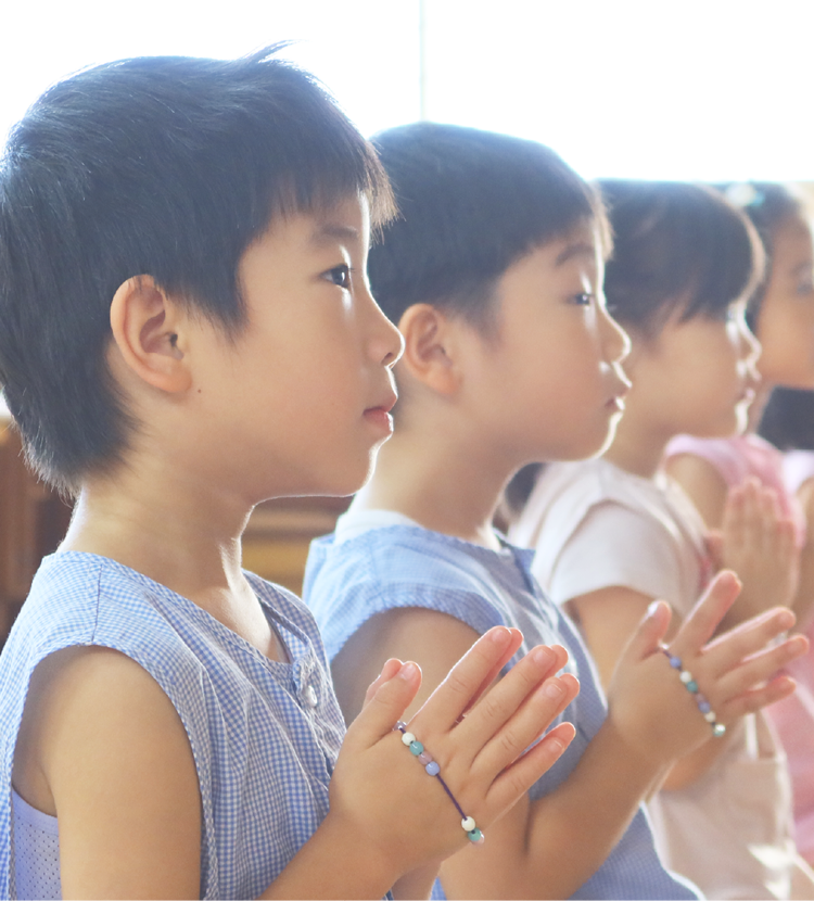 仏教と和と平等の精神を体得せしめる 御仏さまの御慈悲のなか、保育に適した環境のもと、 週に一度のおつとめや毎日の礼拝を通して仏教の和と 平等の精神を育んでいます。 発育に必要な運動や心を養う文化活動など積極的に取り組み 就学前の心身の発達を助けます。