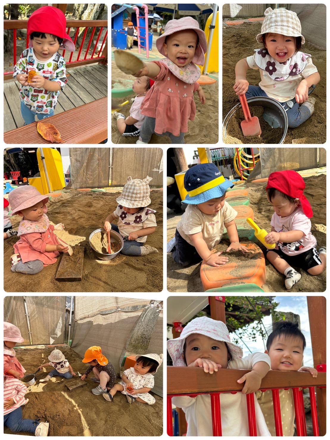 園庭での活動範囲も広がり、思い思いの場所で遊びを楽しんでいます! 最近は、お友達を真似たり、一緒に向かい合って遊ぶ微笑ましい姿も╰(*´︶`*) 落ち葉も新しい遊びのアイテムに 加わりました♪