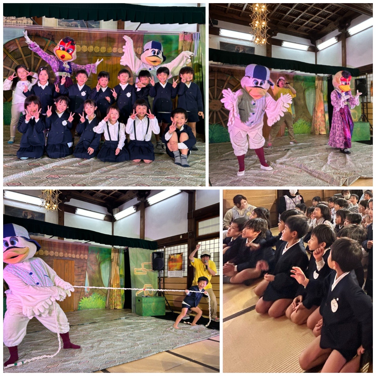今日は『みにくいあひるの子』の劇がありました。最前列、特等席の白組さんは、近くで見るあひるさんたちに大興奮&また、急な接近にちょっとドキッとしながら…笑 大喜びで鑑賞しました。最後は綱引き対決で盛り上がりましたよ!