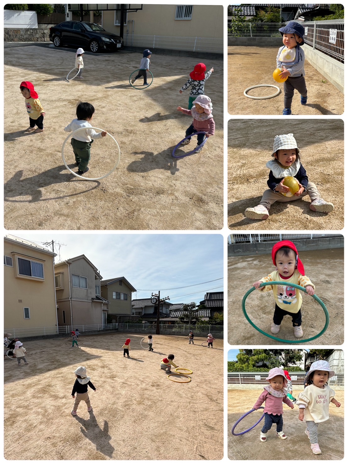 今日はポカポカいい天気☺︎ 外遊びの時間を延長して、園庭から広場へ‼︎ フープやボールを追いかけたり、駆け回ったりしていっぱい遊びました‼︎