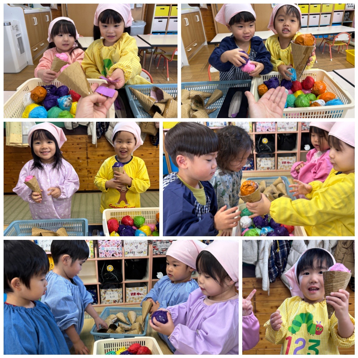 子ども同士の会話のやりとりに耳を傾けると、クスッと笑ってしまうこともあるし、あんなことも言えるようになってる!と成長を感じたりもしています。これはお店屋さんごっこが出来るかも、と思い初めて会話やりとりをしながら遊んでみました。