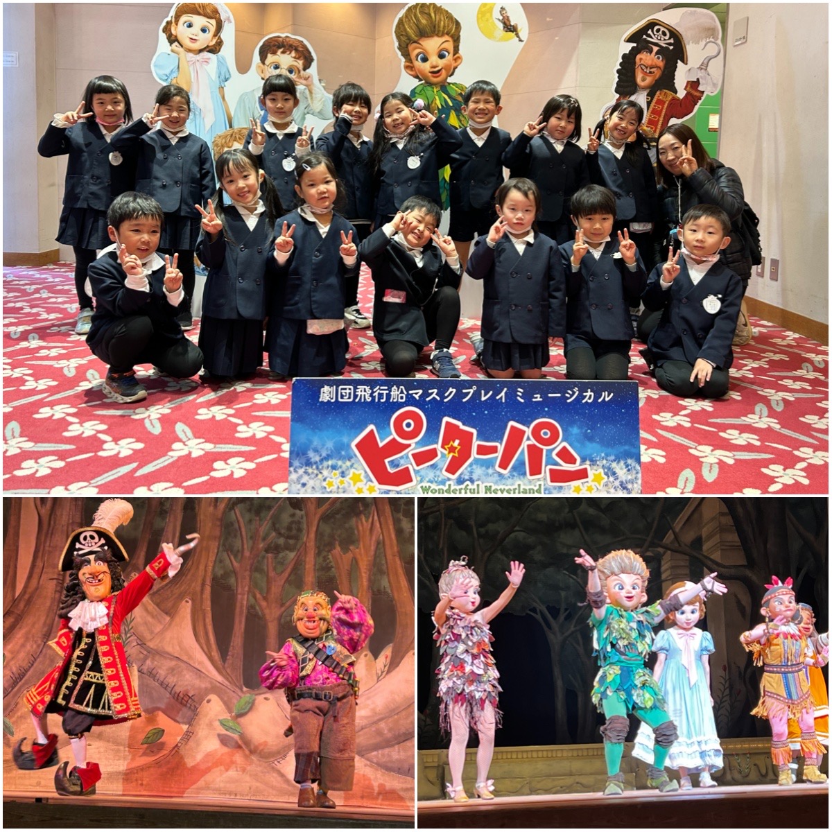 『ピーターパン』の観劇に行って来ました。音楽に合わせて手拍子をしたり、終始、身を乗り出して舞台に釘付けでした。帰りのバスの中では、今日覚えたピーターパンの歌を口ずさんでいました。とってもいい思い出ができましたよ。