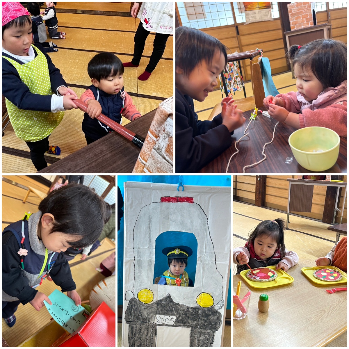 白組さんが、開催してくれたお店屋さんごっこに参加しました。4つのブースで優しく丁寧にお世話をしてくれました。とても楽しく遊ぶことができて皆喜んでいました。どうもありがとう。