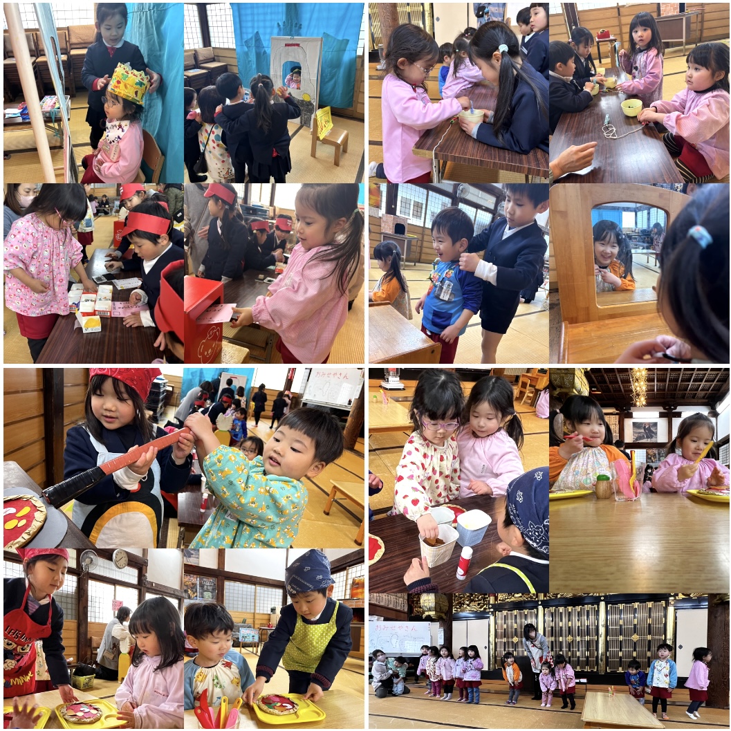 今日は待ちに待った「お店屋さんごっこ」の日!みんな楽しみにしていたので、朝からソワソワ、ワクワク。白組さんの「いらっしゃいませ〜」の優しい声に笑顔でお店をまわり楽しみました!