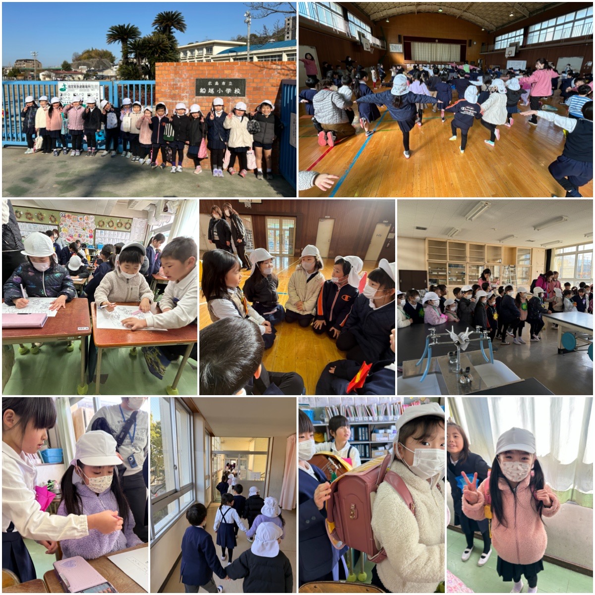 体育館でペアになってくれる1年生と自己紹介ををしたり、体操あそびをしました。教室ではお勉強の仕方(姿勢)を教わり、実際に席に座らせてもらいお勉強体験!ランドセルも背負わせてもらいましたよ。最後は学校体験です。給食室や保健室など、教室以外のいろんなお部屋を見せてもらいました。子どもたちは今日の日をとても楽しみにしていましたが、少し緊張もしたようです。4月からの1年生体験ができて、ちょっと自信がついたかな。