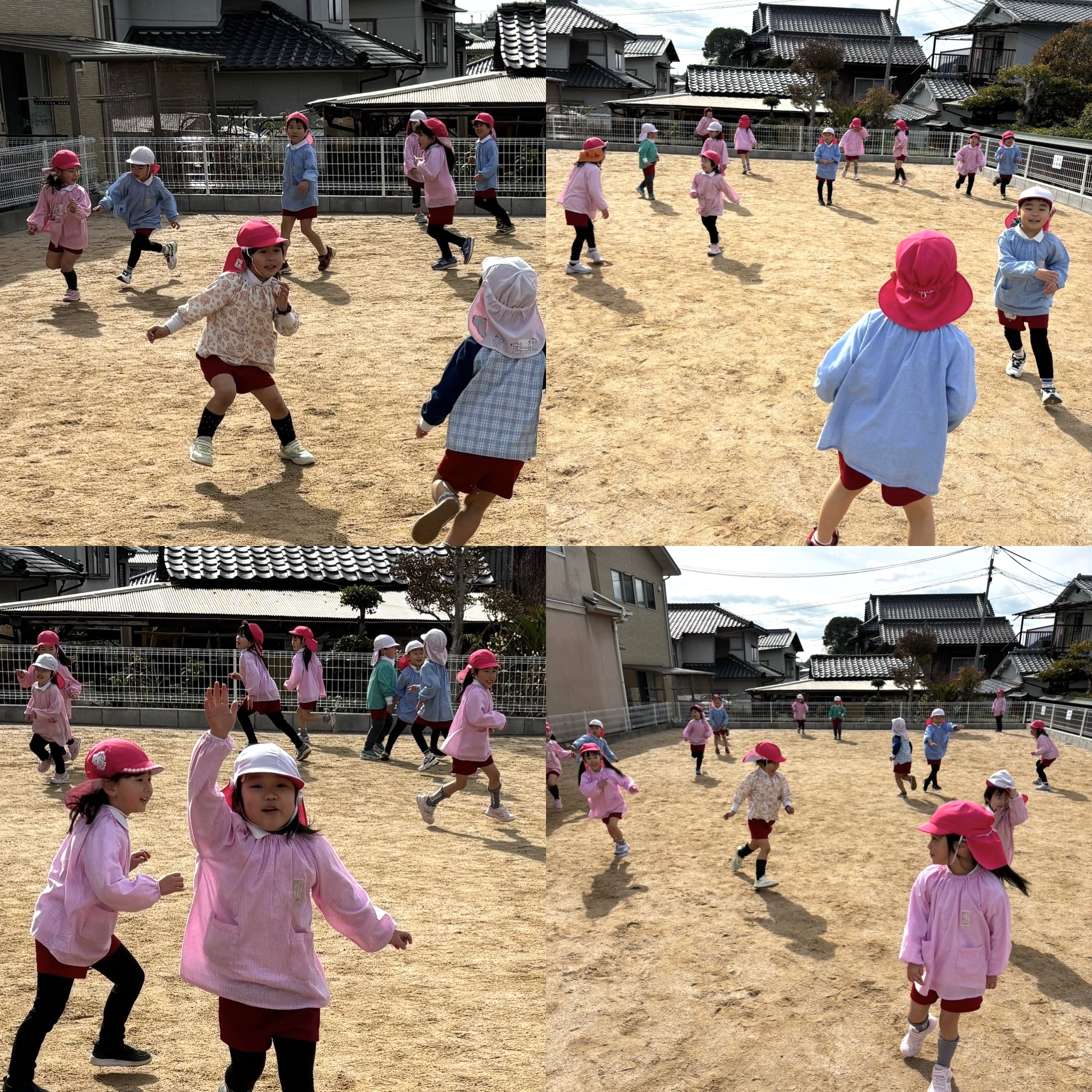 毎日発表会に向けての練習を集中して頑張っている子どもたち! そんな子どもたちの楽しみといえば、やっぱり園庭遊びです。今日はみんなで広い駐車場(第二園庭)で思い切り鬼ごっこをしました! 先生ばかり狙う子ども鬼たち、、先生まだまだ負けないよ(笑)