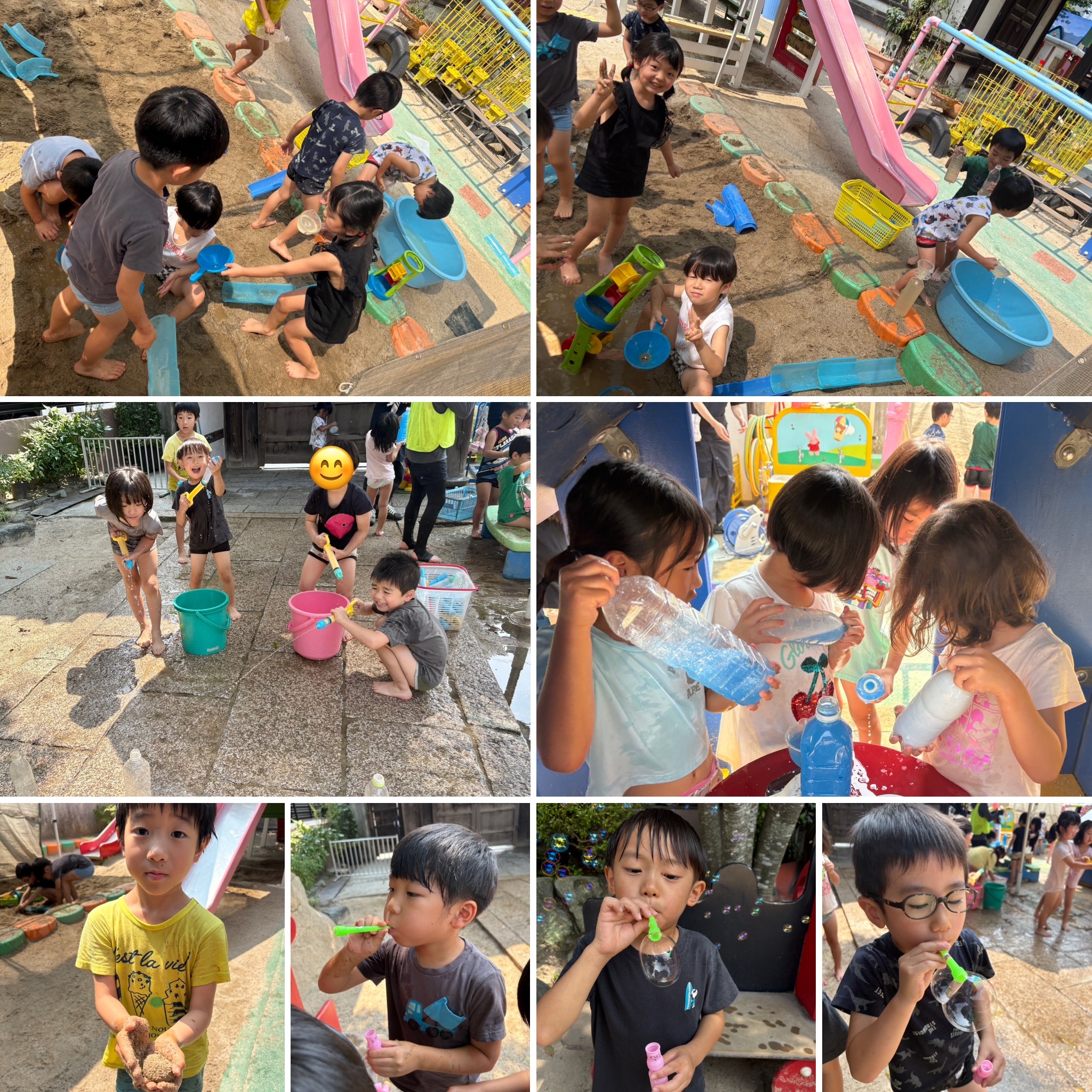 夏遊びも後半に入りました!安定の水鉄砲や泥んこに石鹸の泡遊びも加わり、どんな発見をするのか楽しみです。泥んこでは泥団子作りにも挑戦しています。久しぶりのシャボン玉も盛り上がりました。まだまだ夏を楽しみます☆