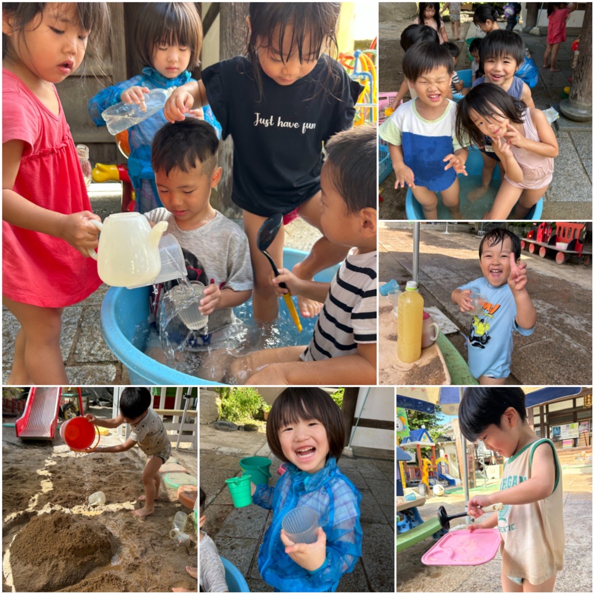 魚釣りや水を汲む場所として用意しているたらい。たらいに入りたい!と子どもたちからのお願い。ぎゅうぎゅうになりながら水に浸かって喜んでいましたよ。明日は最後の水遊び。明日も天気にな〜あれ!!