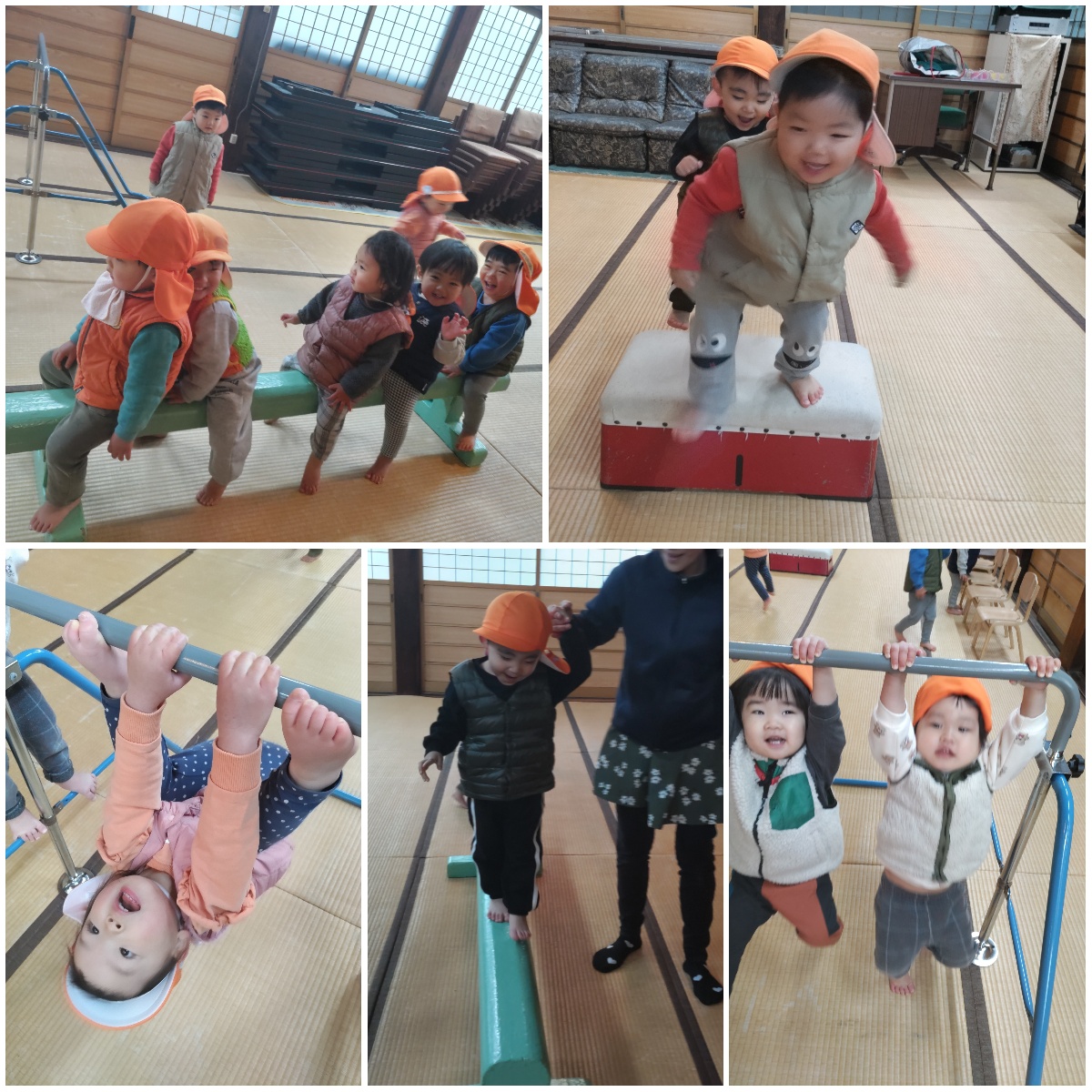 雨だったので、本堂で体を使って遊びました!