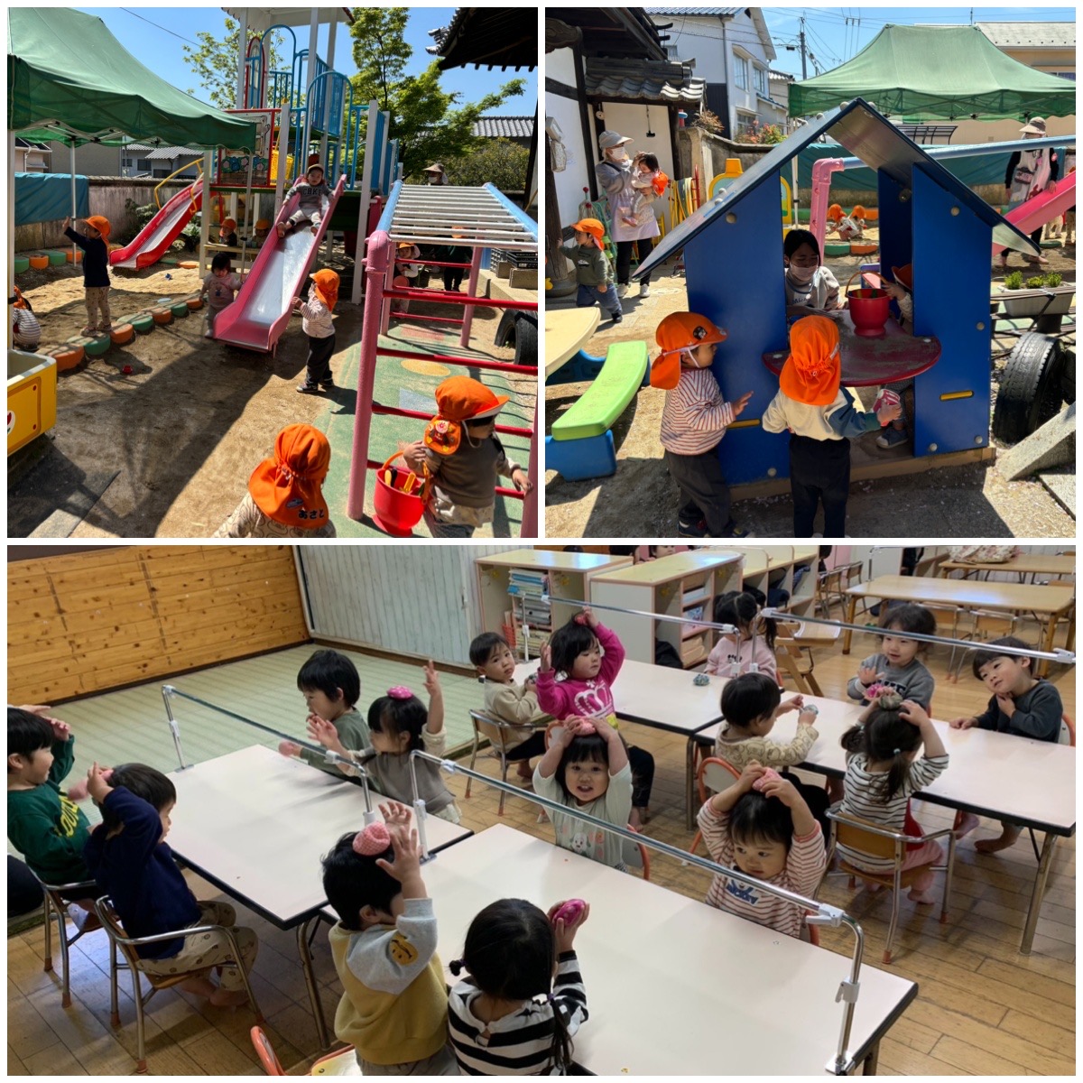 今日は昨日雨で外あそびが出来なかった分、2倍楽しんでいるように見えました! お部屋では、初めてお手玉を持ってみました。手触りが楽しいし、投げてみても楽しいし、頭に落とさないように乗せてあそぶと大喜びだったのでその様子もお見せしますね。