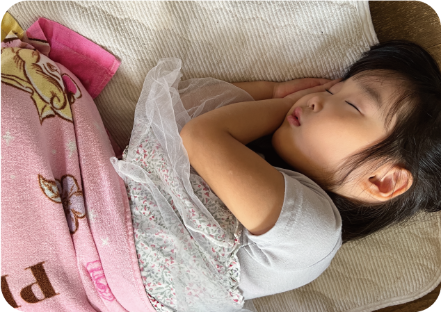 優しい音楽が流れる中、お話を読んでもらったりしながら眠りにつきます。
